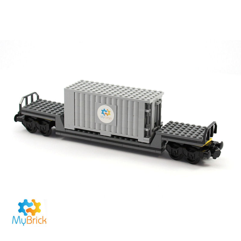 5x Standard Train Carriages with Shipping Containers; 1x of each colour: Tan, Brown, Light Grey, Dark Grey, Black