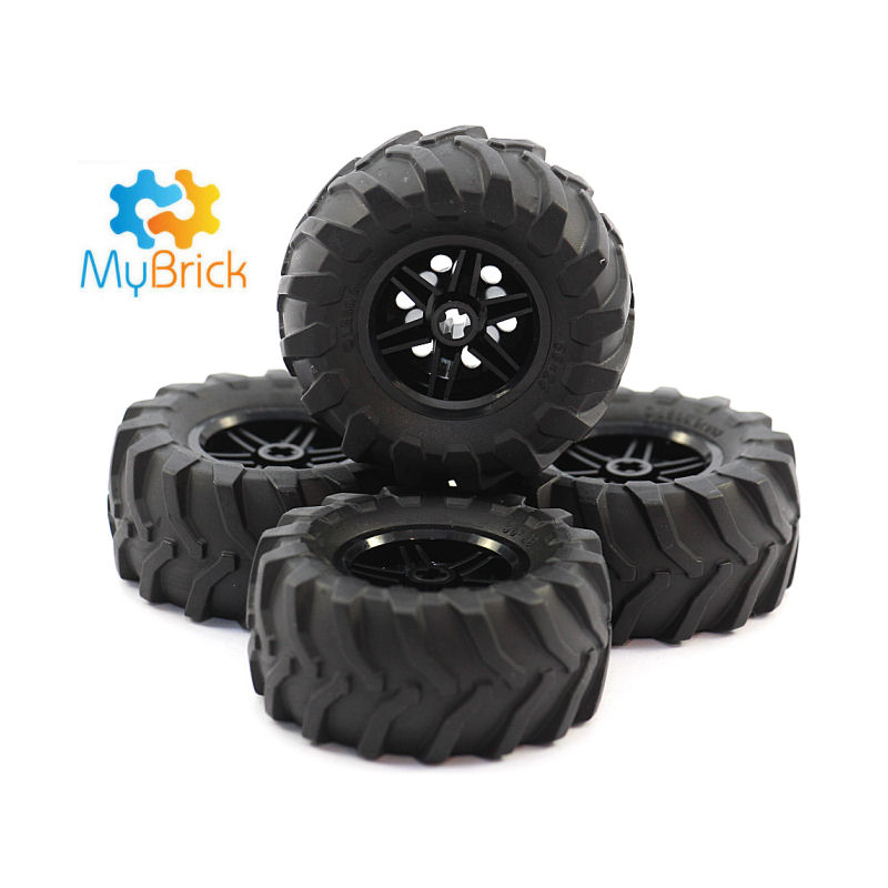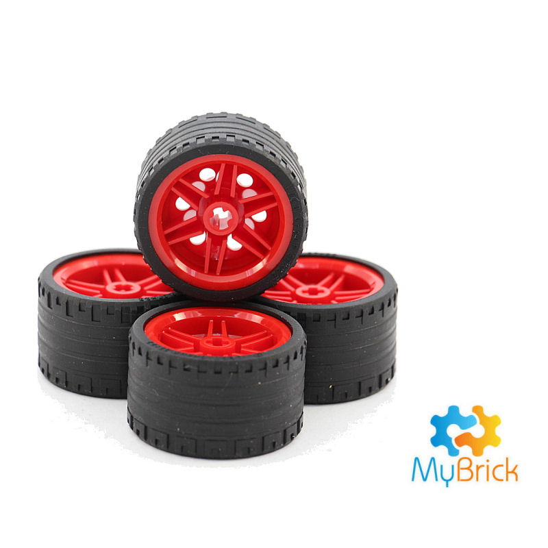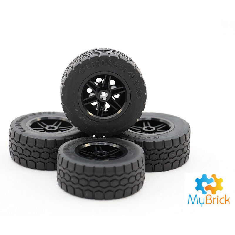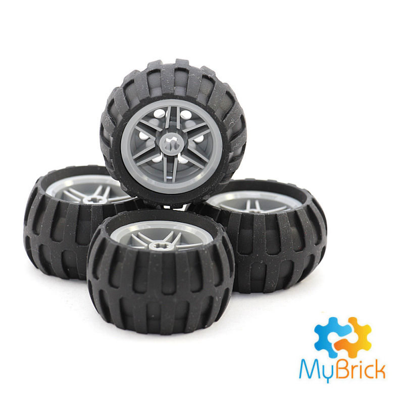 Lego Black Wheel Large Technic with 28 Pin Holes with Fixed Medium Azure Rubber Tire