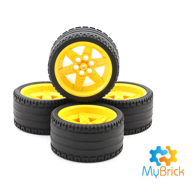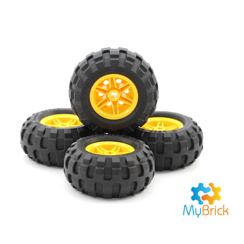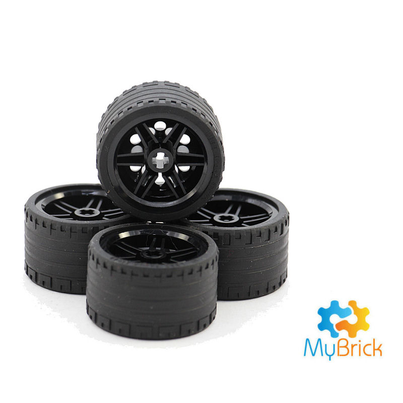 56 x 14 Technic Black Wheel with 8 Pin Holes with Fixed Black Rubber Tire